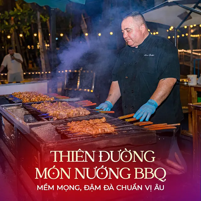 - View biển trực diện từ bàn tiệc: Bữa tối của bạn bắt đầu cũng là lúc hoàng hôn nhuộm vàng mặt biển Phú Quốc. Không gian mở giúp thực khách đón trọn làn gió biển và tầm nhìn vô cực.